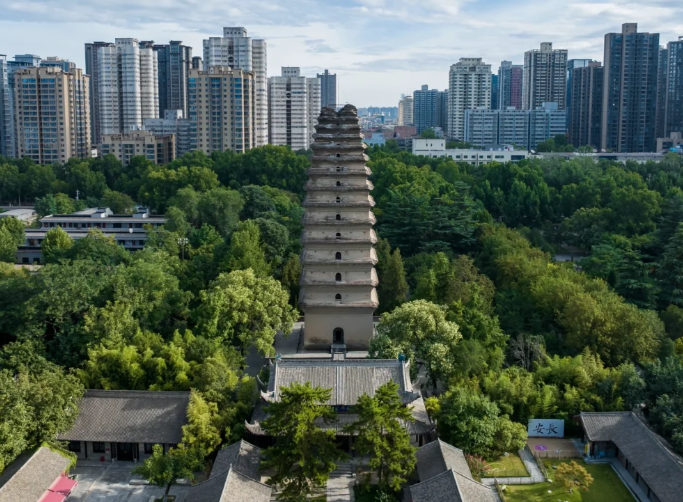 Xi'an Museum, located near the pagoda, it offers a comprehensive reflection of the rich history of Xi'an, seamlessly integrating the Small Wild Goose Pagoda— a national key cultural protection unit— with the historic structures of Jianfu Temple and a modern cultural relics exhibition hall.